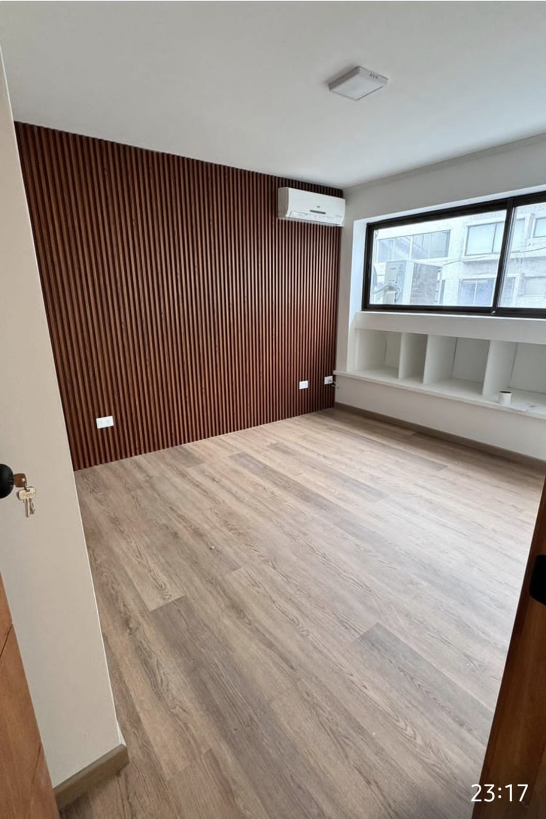 Equipado con 2 Aires Acondicionado, uno en el Living Comedor, otro en la habitación.